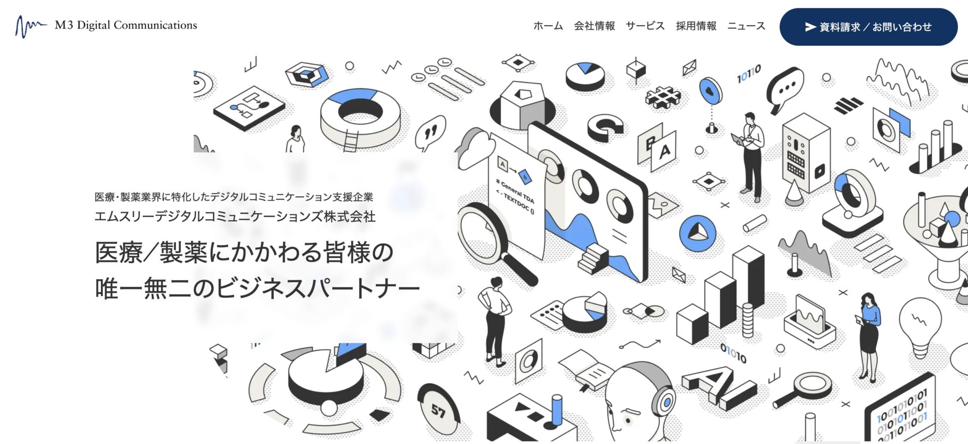 エムスリーデジタルコミュニケーションズ株式会社(M3DC)は、東証プライム上場のエムスリー株式会社の100%子会社として2014年に設立。医療・製薬業界に特化したデジタルコミュニケーション支援を手がける専門企業です。製薬企業・医療機器メーカーを中心に100社以上が利用し、年間4,000本以上のWeb講演会配信実績を誇ります。 一般的なイベント配信業者とは異なり、医療業界特有のプロモーションコード・ガイドライン対応や、社内メディカルライターによる学術企画支援まで含めた「医療特化型」のサービス設計が最大の特徴です。配信当日の実務にとどまらず、集客・演出企画・システム開発・効果測定まで一気通貫で対応します。