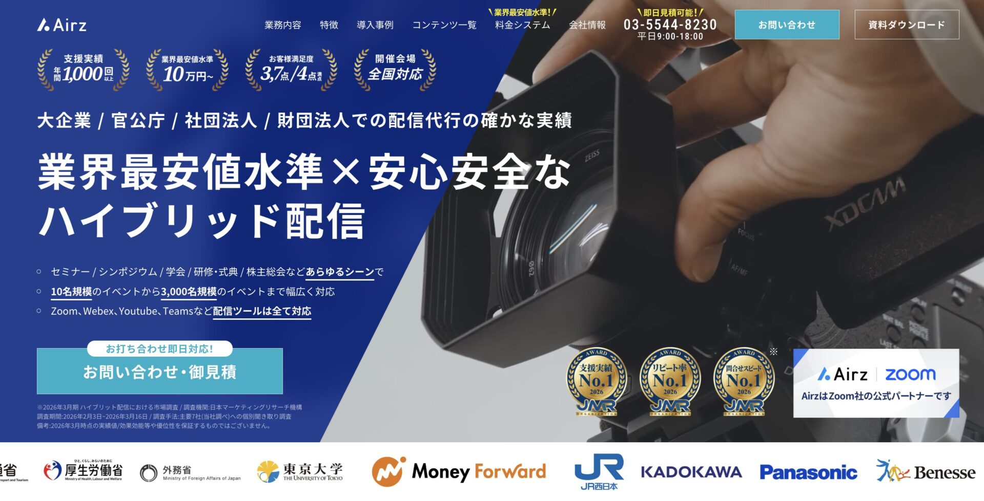 ・Zoom社公認の配信サポート企業。Zoomの最新アップデートにも即対応