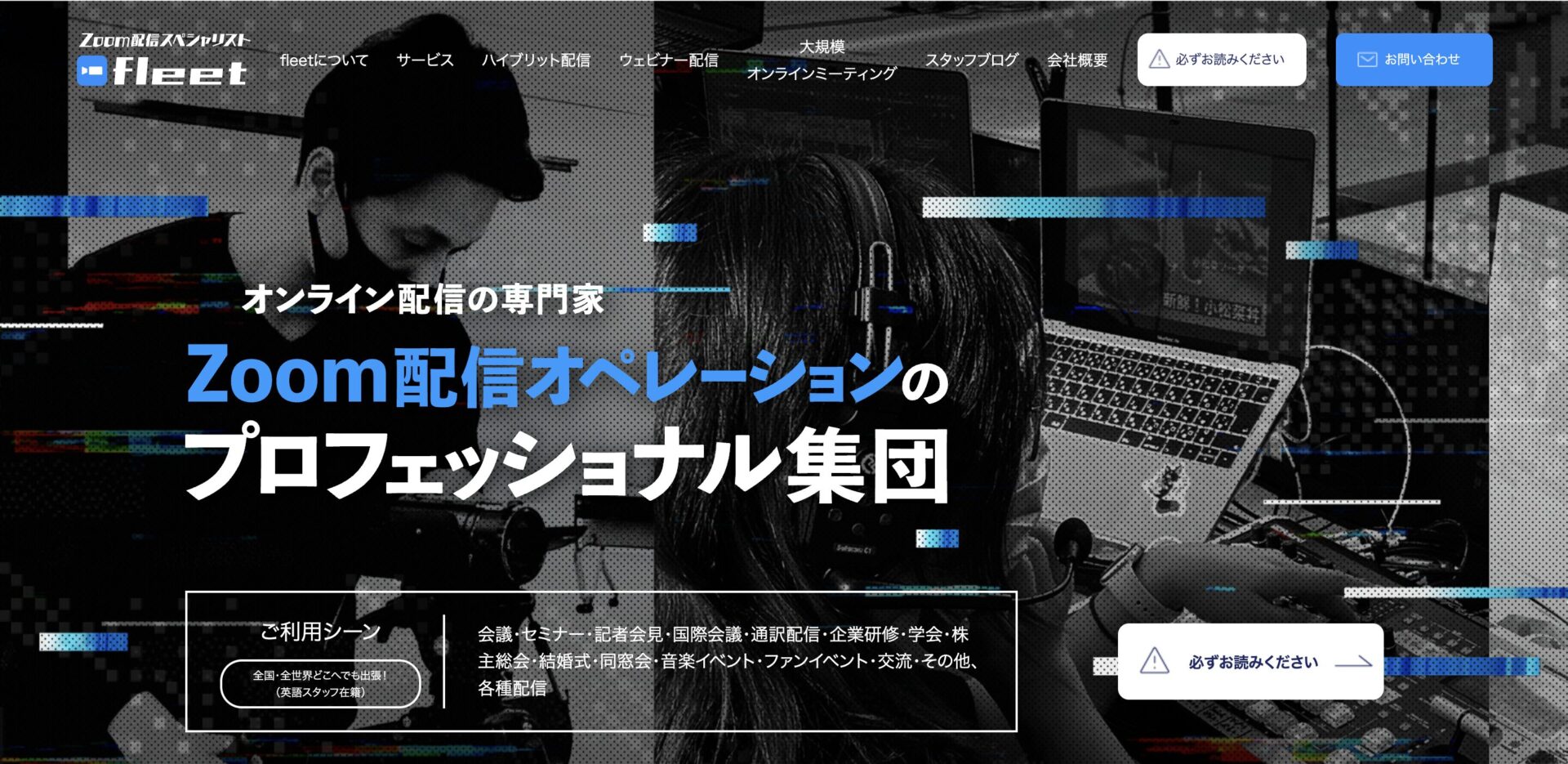 フリート合同会社は、「Zoomを徹底的に熟知したオンライン配信のスペシャリスト集団」として、Zoom配信オペレーションに特化したサービスを提供しています。Zoom社公認の配信サポート企業であり、ウェビナーオペレーション実績500回超、年間20,000時間以上の配信実績を誇ります。2,000名以上が参加する大規模ミーティングや国際学会の配信運営も手がけており、その技術力と対応力は高く評価されています。Zoom一択でイベントを運営したい企業にとって、これほど専門特化した業者は他にほぼ存在しません。一方で、Zoom以外のツールを使いたい場合は他社を検討する必要があります。