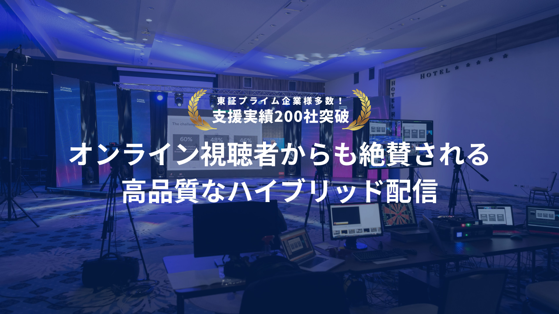 安全安心な配信を心がけたい、自社ではリソースが足りないという方は、配信代行業者に依頼するのもおすすめです。これらのサービスはハイブリッド総会の企画から準備、運営、アフターフォローに至るまで、幅広いニーズに応じたサポートを提供しています。具体的には、オンラインツールの選定支援やセットアップ、リハーサルの段階から本番の進行管理、トラブルに対する迅速な対応など、経験豊富なスタッフが総合的なサポートを行います。また、参加者のエンゲージメントを高めるためのインタラクティブな機能の導入や、意見交換のためのファシリテーションとモデレーションの提案も重要な役割を果たします。 Airz Hybrid(エアーズ ハイブリッド)では、オンライン配信からハイブリッド配信実施における企画からフォローまで一気通貫でサポートしているので、疑問や課題があれば、些細なことでもお気軽にご相談ください! 対応可能ツール: Zoom、Cisco Webex、Vimeo、Microsoft Teamsなど 料金システム: ベーシックプラン(10万円) + オプション料金というシステムでサービス提供しております。詳細なお見積りを希望の場合はお問い合わせください。 ハイブリッド配信のAirz:http://hybrid.airz.co.jp/hybrid/