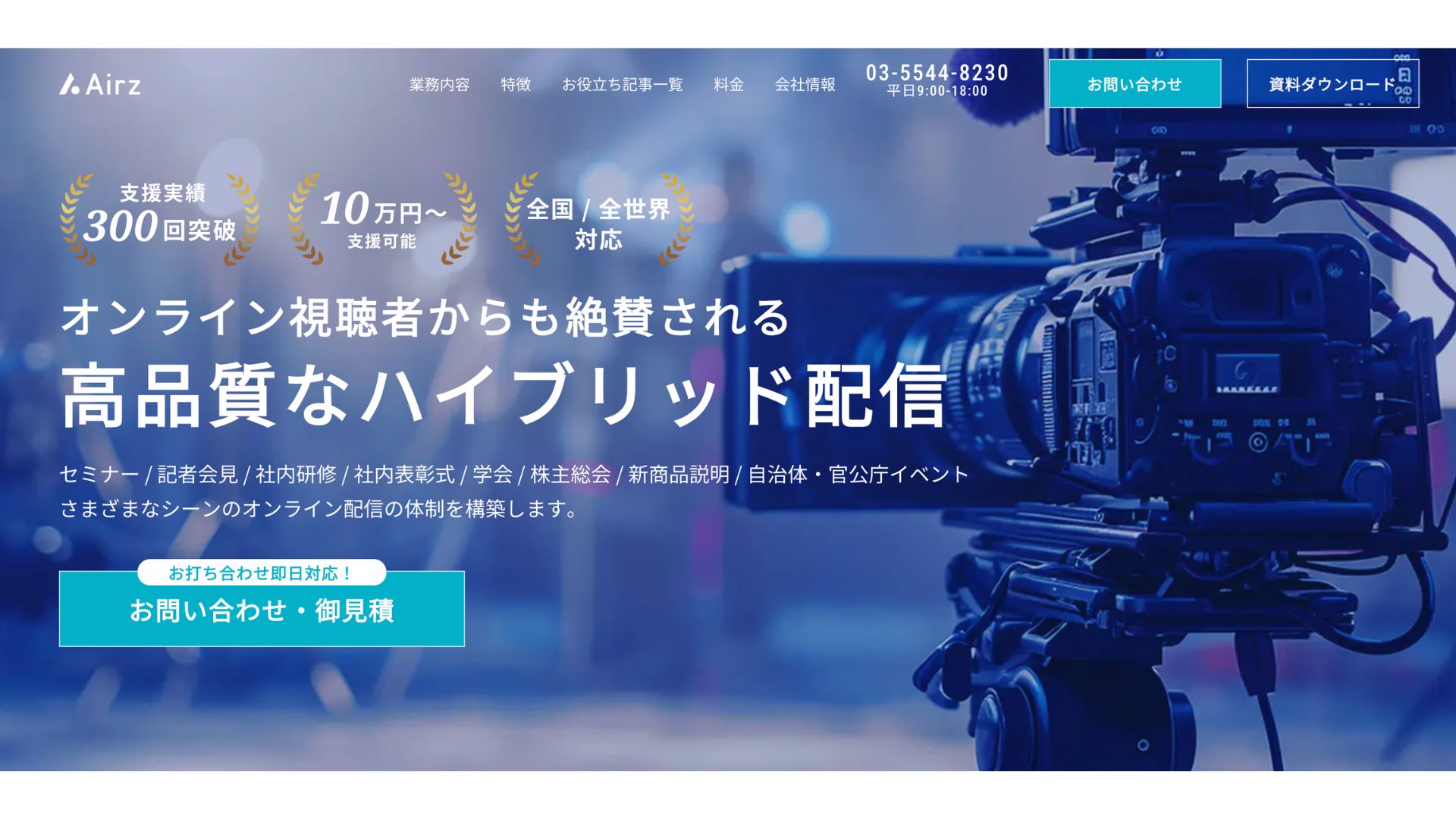 イベントを成功させたいと考えている人におすすめなのが、運営代行会社の活用です。イベント運営代行会社を頼れば、イベントの企画や準備・当日の運営・アフターフォロー・効果測定などを代行してくれます。 数々のイベントを代行してきたプロに任せられるため、高い成果が期待できるでしょう。社内のリソースを抑えられるため、コア業務にコミットできるのも嬉しいポイントです。イベント運営のサポートはAirz Hybridにお任せください!