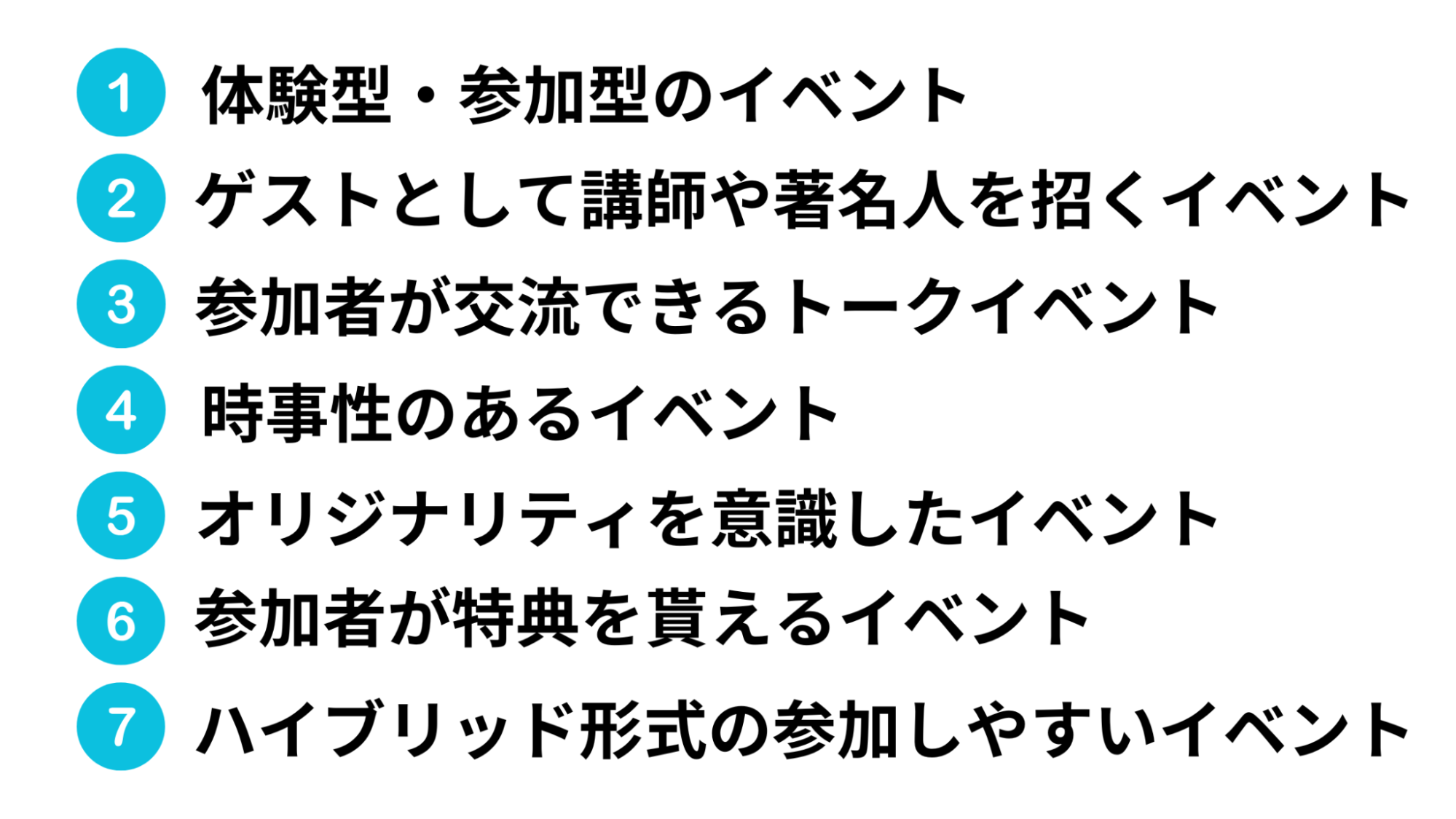 ここでは、イベントを企画する際に使える7つのアイデアを紹介します。