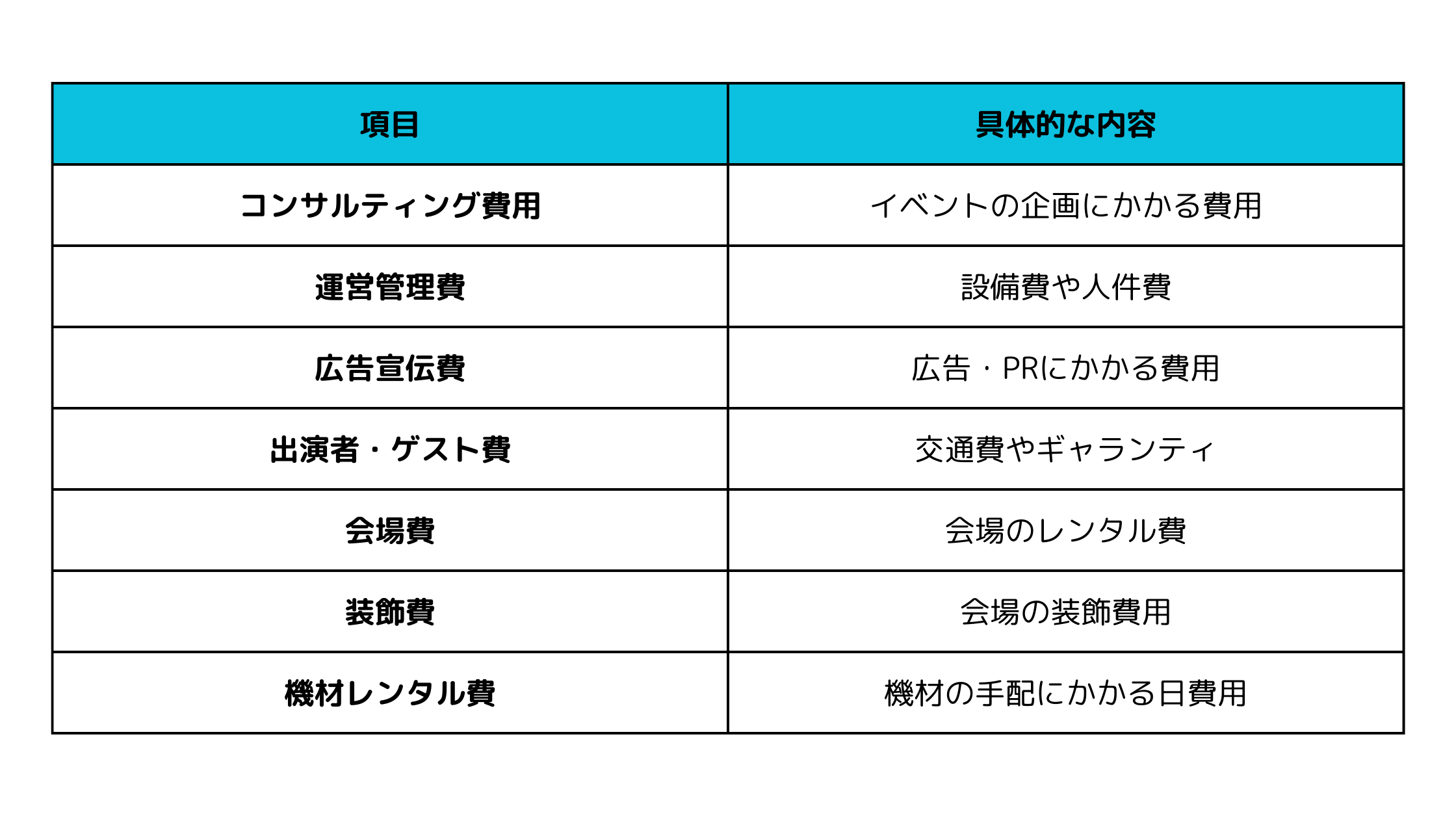 イベント運営委託は、基本的に以下の費用で構成されています。