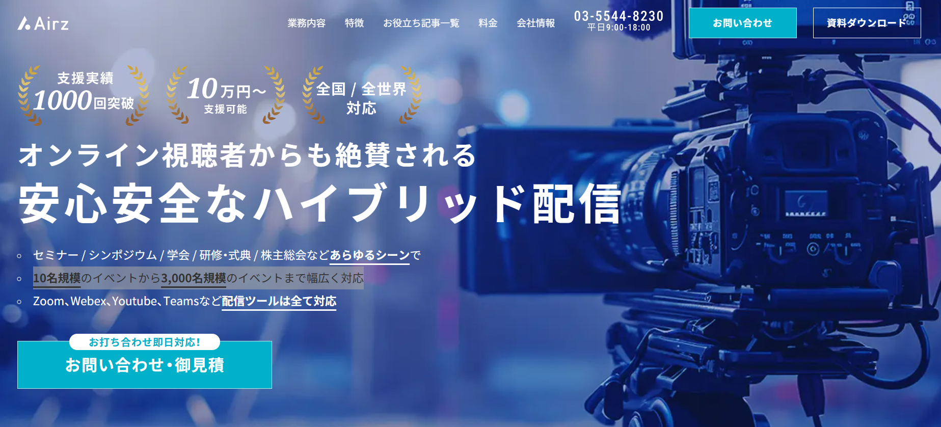 イベント運営の委託を検討している方には、オンラインやハイブリッド形式が得意なAirz Hybridがおすすめです。