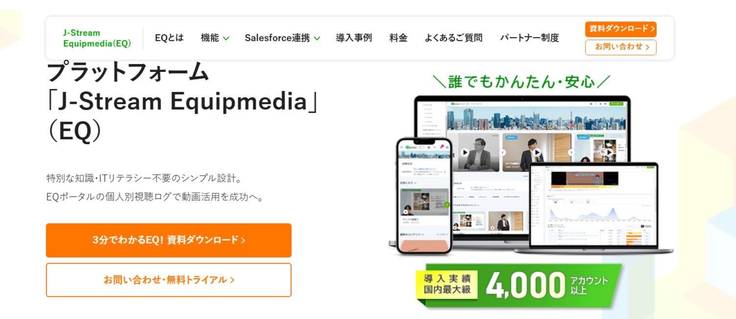 J-Stream Equipmediaは、累計2,000アカウントの導入実績を誇る企業向け動画配信プラットフォーム。豊富な機能と安定性を兼ね備え、社内研修・カスタマーイベント・IR配信などに最適です。高負荷環境下でも安定配信を実現し、全体の業務効率化が期待できるでしょう。